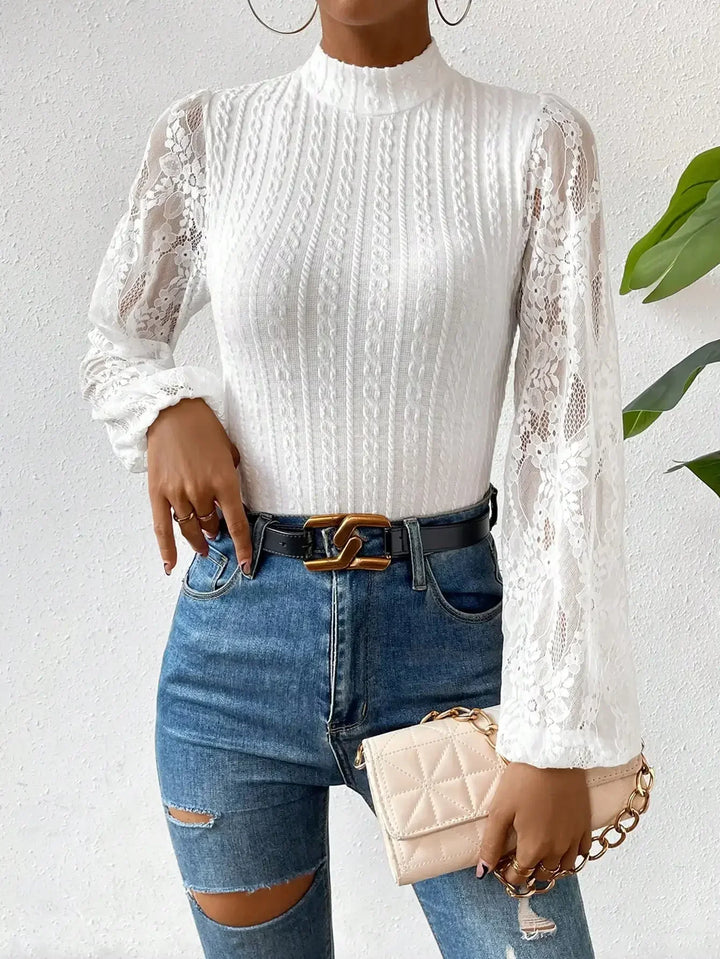 Body Gola Alta Manga Longa Renda: Sofisticação e Estilo Atemporal