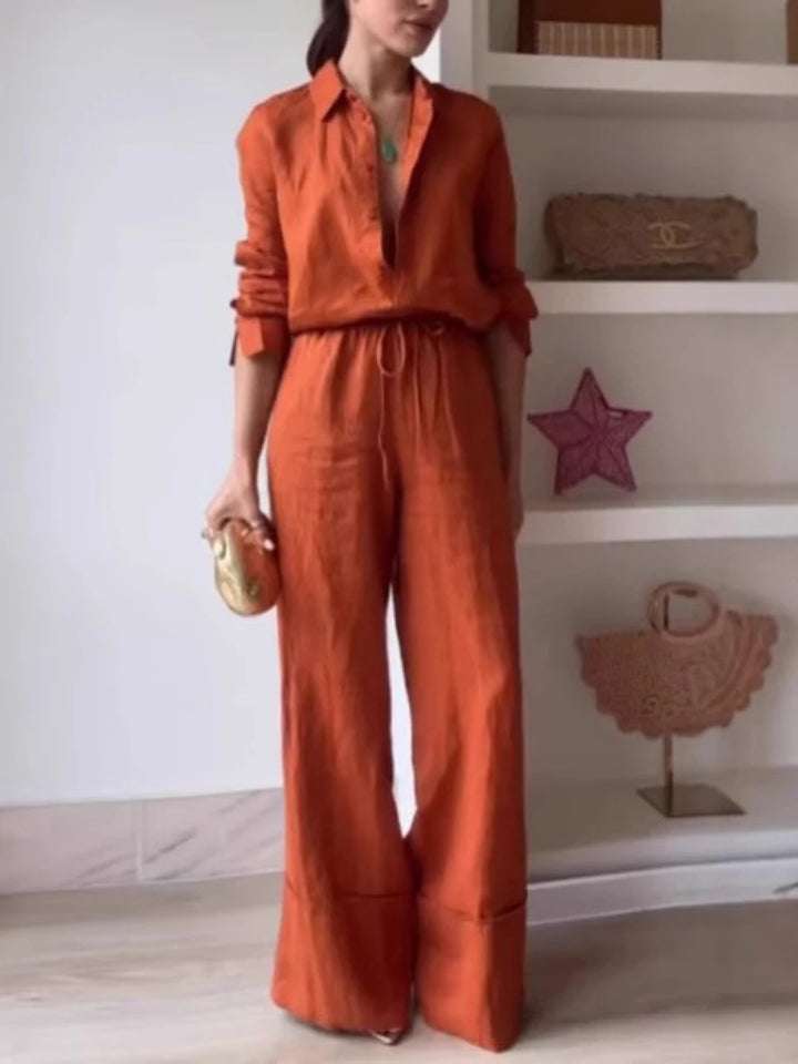 Vista-se com elegância e confiança neste verão com o Conjunto Feminino Camisa Gola e Calça Pantalona. Leve, refinado e versátil — o equilíbrio perfeito entre conforto e estilo para todas as ocasiões.