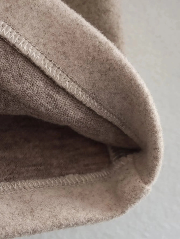 - Bolsos funcionais: ideal para pequenos objetos ou aquecer as mãos com estilo.