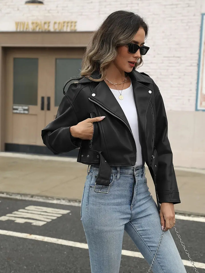 Jaqueta Feminina de Couro com Zíper – Atitude e Elegância em Cada Detalhe