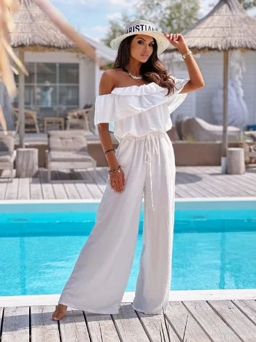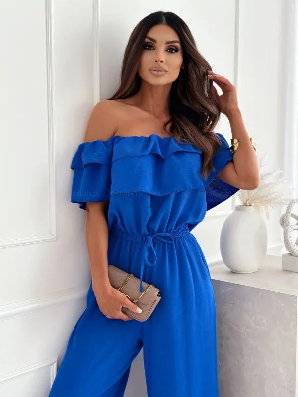 Macacão feminino de perna larga Amarração na Cintura