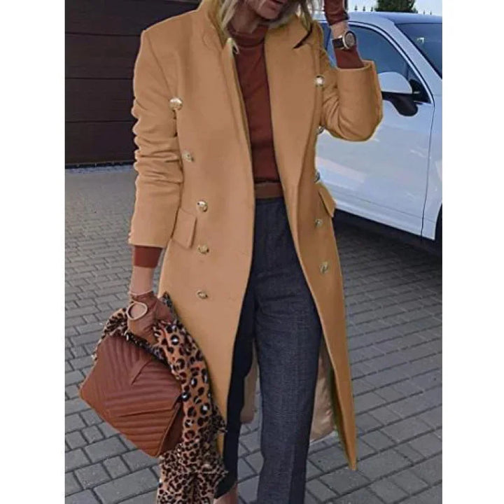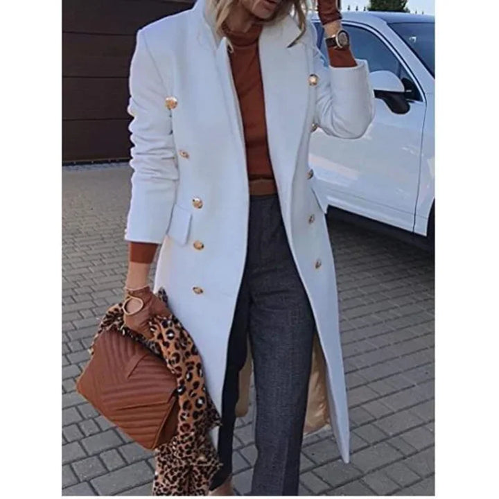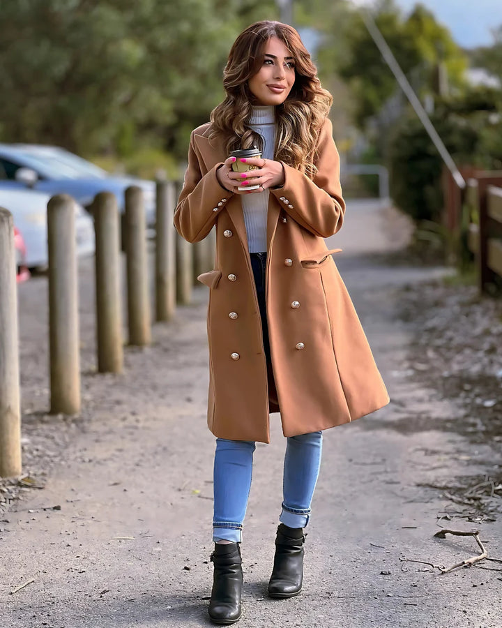 Feito com material de lã de alta qualidade, este sobretudo garante isolamento térmico eficiente, mantendo você aquecida mesmo nas temperaturas mais baixas. O decote em V e o fechamento com botões proporcionam um visual refinado, que valoriza a silhueta feminina com elegância.